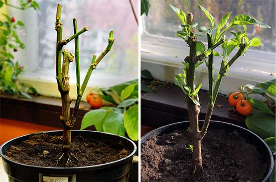 Juuri ennen ensilumen tuloa hellyin muutaman pakkasyönkin kestäneelle Jamylle ja kaivoin sen ylös maasta, pesin juuret, leikkasin oksat lyhyeksi, istutin ruukkuun ja toin sisään. Sehän näyttää selvinneen rajusta muutoksesta nopeasti, sillä jo kolme viikkoa myöhemmin se puskee uusia lehtiä keväiseen tapaan.